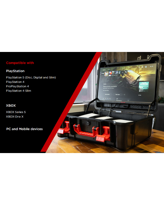GAMERSBOX من ARMORR هو شاشة ألعاب محمولة بدقة 1080 بكسل 21.5 بوصة تتمتع بغطاء مقاوم للماء والغبار IP65، مما يوفر حماية فائقة لأجهزة الألعاب أثناء التنقل. تأتي الشاشة مع تقنية FreeSync لتوفير تجربة لعب سلسة وألوان دقيقة، بالإضافة إلى متانة عالية تتحمل حتى 200 رطل من المقاومة وارتفاع سقوط يصل إلى 2 قدم. تتميز الشاشة بسهولة الاتصال والتشغيل، وتدعم العديد من أجهزة الألعاب مثل PS4/PS5 وXbox One X وXbox Series S بالإضافة إلى الأجهزة المحمولة عبر مدخل HDMI 1.4.