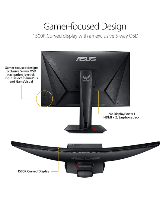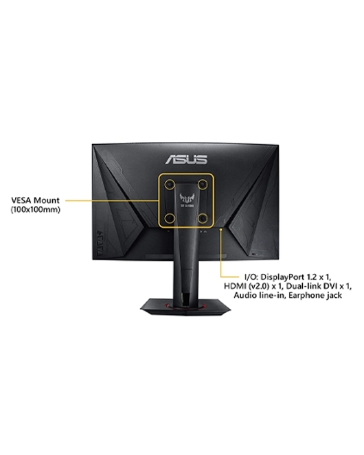 اسم المنتج: ASUS TUF Gaming VG27VH1B 27” VA Curved Monitor, 1080P Full HD, 165Hz (Supports 144Hz), Extreme Low Motion Blur, Adaptive-sync, FreeSync Premium, 1ms, Eye Care, HDMI D-Sub, BLACK