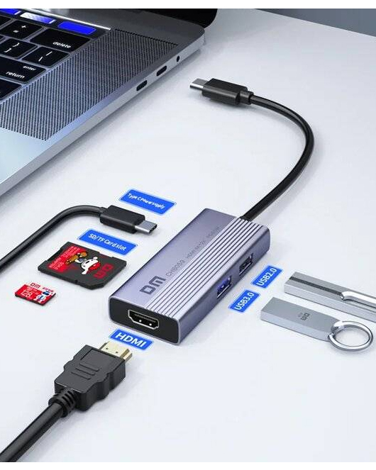 - Type-C to (USB3.0 + HDMI + USB2.0 + PD + SD + TF)