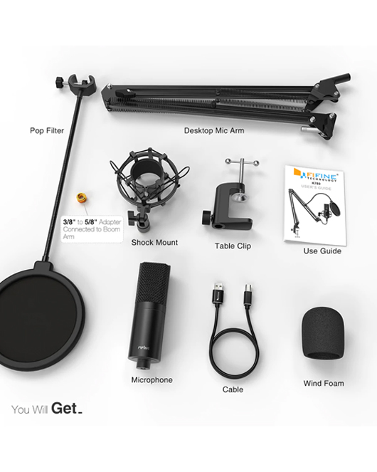 Fifine USB Streaming Microphone Kit, Condenser Studio Mic with Arm Stand & Pop Filter for Podcast Vocal Recording Singing YouTube Gaming Voice Over, Directional Computer Mic for PC Laptop-K780A