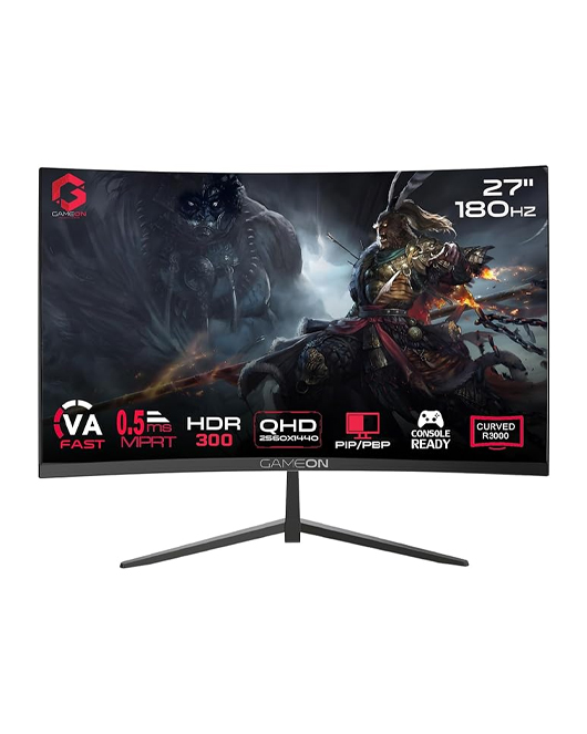 GAMEON GOC27Q180VA Pro Series | شاشة ألعاب منحنية 27 بوصة QHD، معدل تحديث 180Hz، زمن استجابة 0.5ms، VA Panel – أسود
