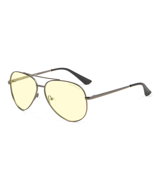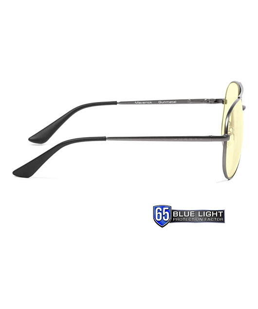 - Help reduce the strain on your eyes caused by hours in front of the computer or TV with the gunmetal with amber lenses GUNNAR Maverick Computer Glasses. They are designed to block up to 65% of harmful blue light and up to 100% of UV light, which may reduce the risk of macular degeneration. They feature adjustable floating nose pads and a lightweight design at just 1.1 oz, making them well suited for long-term use.