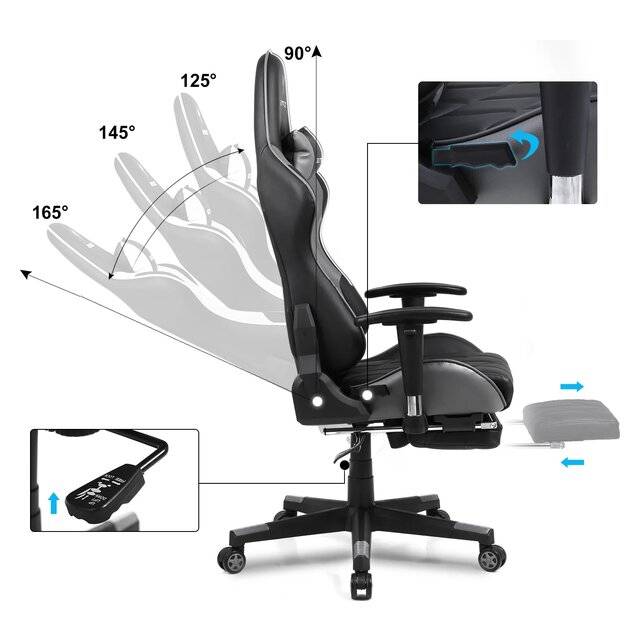 GXTrace GC 026 | كرسي ألعاب مريح بتصميم أنيق ووظائف متعددة – رمادي/أسود