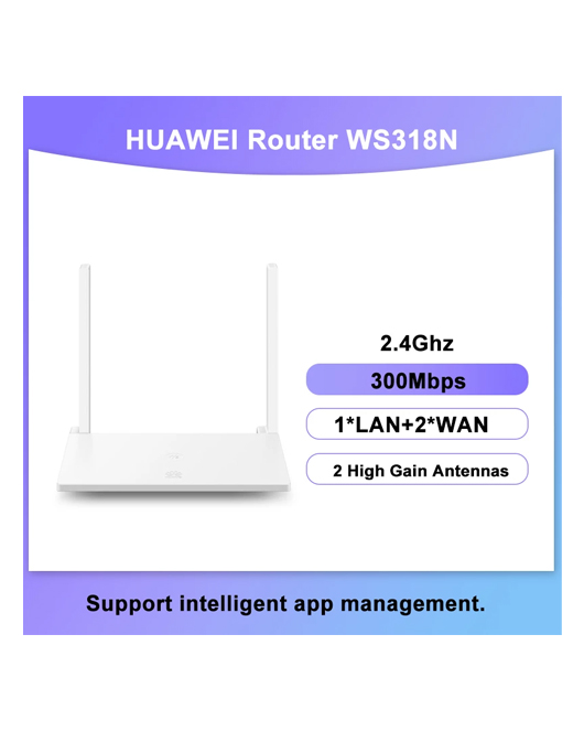 - Huawei WS318N WiFi Router, 802.11n, 2.4GHz, 300Mb/s – White