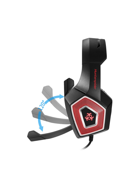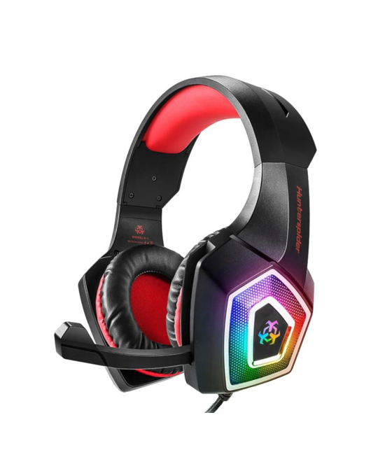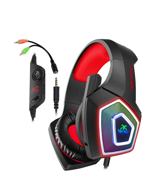 Hunterspider V1 Wired Headphone Gaming Earphone with Microphone Noise Cancelling LED Wired Headset, Black Red