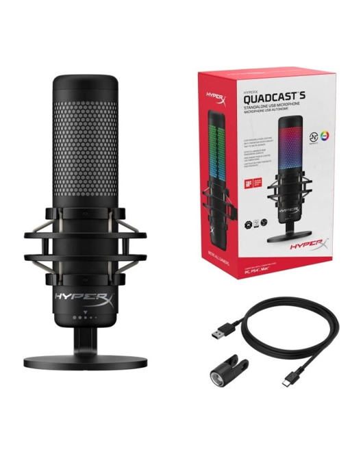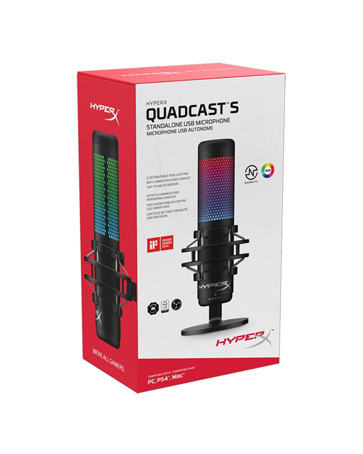 HyperX QuadCast S | ميكروفون كوندنسر USB بإضاءة RGB مخصصة للألعاب والبث – متوافق مع PC، PS4، PS5، Mac