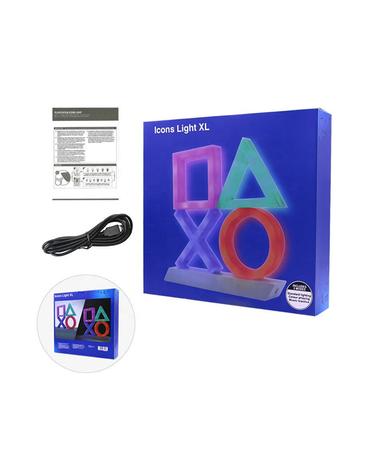 - LIGHT THE NIGHT: Light up your bedroom with the symbols and icons from the hugely popular and fun PlayStation gaming system. The PlayStation Icon Light illuminates the dark with a soft colorful glow.