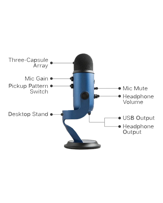 تم تصميم ميكروفون Logitech Blue Yeti لتقديم صوت عالي الجودة لعمليات البث المباشر، التسجيلات الصوتية، والندوات عبر الإنترنت. مع تقنية Three-Capsule Array، يوفر هذا الميكروفون صوتاً واضحاً وقوياً يناسب اليوتيوب، البودكاست، الألعاب، الاجتماعات عبر Zoom، والموسيقى. كما يدعم برنامج Blue Voice لتخصيص الصوت عبر مؤثرات متقدمة وأصوات HD.