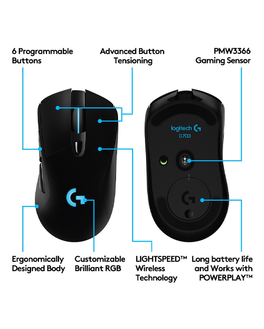 Logitech G703 | ماوس ألعاب لاسلكي مع مستشعر Hero 25K وتقنية Lightspeed RGB