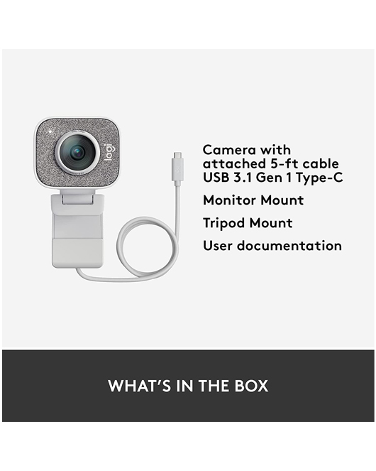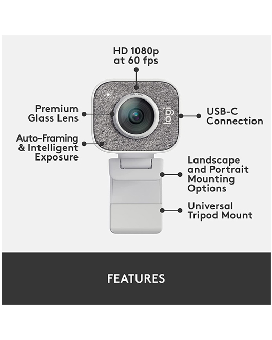 Logitech StreamCam | كاميرا ويب فائقة الجودة للبث وإنشاء المحتوى، دقة Full HD 1080p 60 إطارًا في الثانية، عدسة زجاجية مميزة، تركيز تلقائي ذكي – للكمبيوتر الشخصي وماك – أبيض