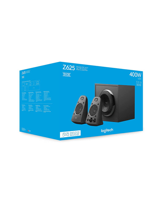 تقدم Logitech Z625 تجربة صوتية مدهشة مع شهادة THX التي تضمن لك صوتًا دقيقًا وعالي الجودة مباشرة من العلبة. بفضل 200 وات RMS / 400 وات ذروة، يوفر هذا النظام صوتًا واضحًا مع باس قوي. يتميز هذا النظام بمرونة عالية بفضل دعم المدخلات المتعددة مثل المدخل البصري و 3.5 مم و RCA، مما يسمح لك بتوصيل ما يصل إلى ثلاثة أجهزة مختلفة مثل جهاز الكمبيوتر، جهاز الألعاب، والتلفزيون.