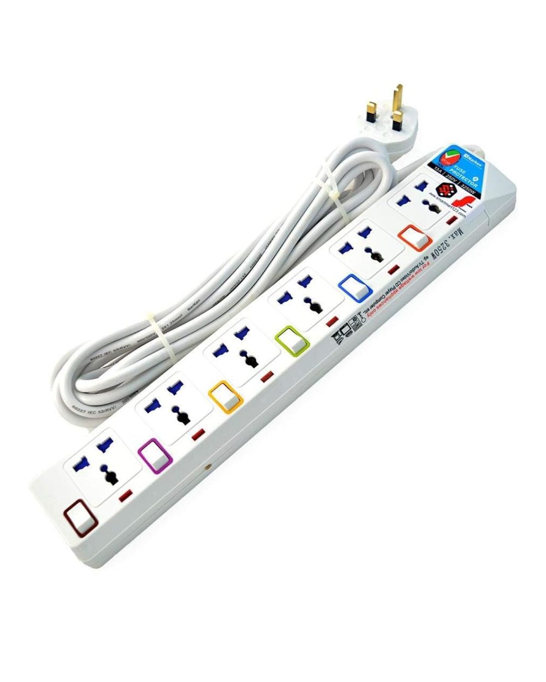Marken E106 | مشترك كهرباء عالمي بـ 6 مخارج مع كابل 3 متر وحماية للأطفال