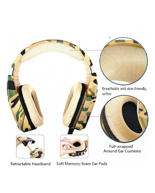 ????[Unique Camouflage Design Style/Hidden Noise Cancelling Microphone] Headset body adopts a new generation of water transfer technology. The ultra-avant-garde camouflage design style demonstrates personal unique taste and fashion. Hidden microphone can be rotated 120 degrees, when you are not using it, you can hide it freely. Equipped with a noise reduction chip, which allows you to communicate with your teammates more clearly. With cool LED lighting effects, it creates a unique game atmosphere.