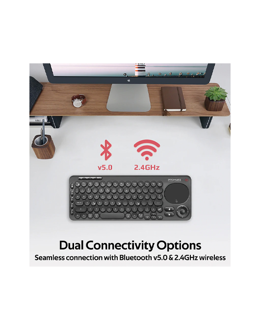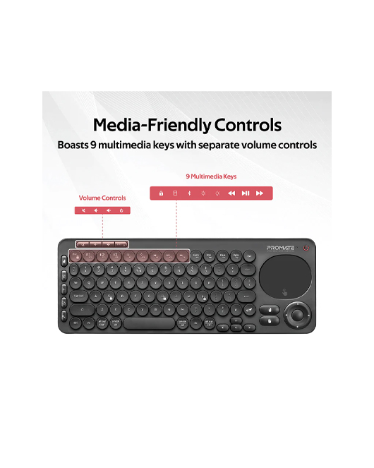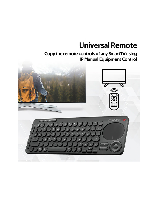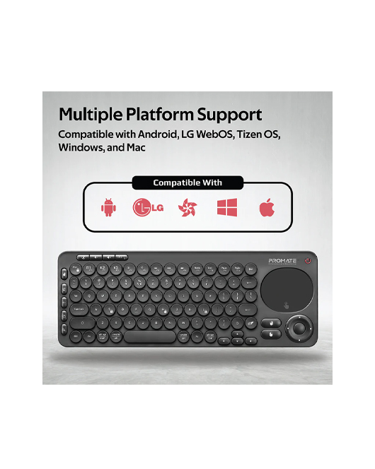 Designed with smart, multifunctionality in mind, KeyPad-1 is a wireless multimedia keyboard featuring high-accuracy touchpad with separate left and right mouse keys. The wireless 2.4GHz connectivity ensures there’s no delay or dropouts while working. With Bluetooth v5.0, connect the keyboard with your smart TVs and navigate flawlessly. The keyboard also features universal remote control allowing you to have complete command over your TV. KeyPad-1 also boasts a separate volume controller and nine multimedia keys for ultimate convenience. The wireless keyboard is compatible with Android, LG WebOS, Tizen OS, Windows, and Mac.