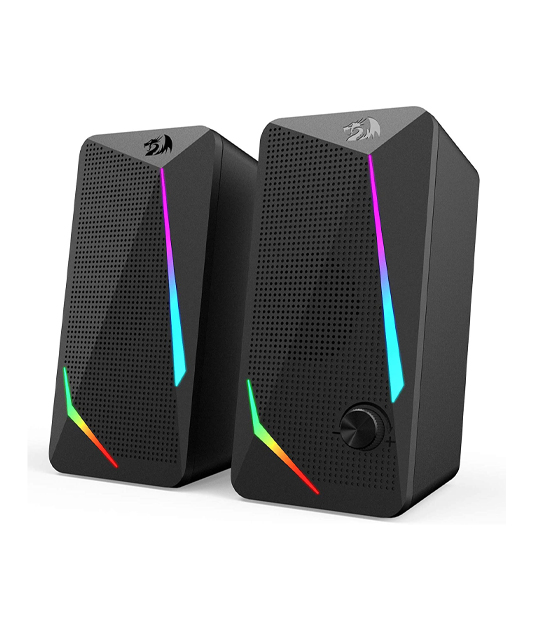 Redragon GS510 Waltz RGB Desktop Speakers, 2.0-channel computer stereo speaker with 4 colorful LED backlight modes, enhanced bass and easily accessible volume control, USB-powered with 0.138″ cable