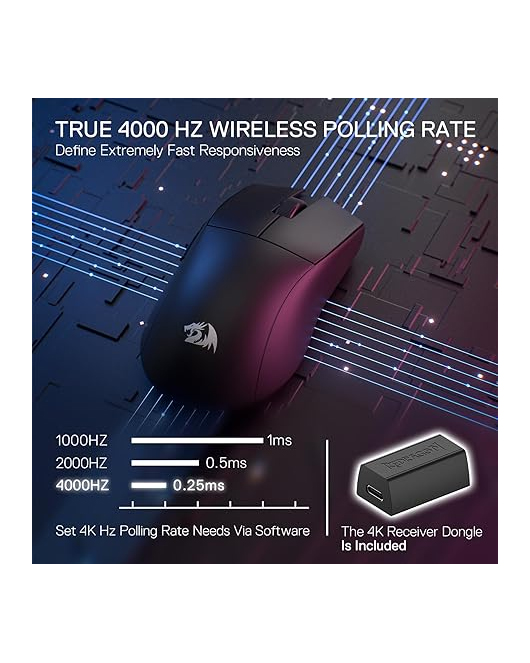 - 4000Hz Report Rate – Armed with Redragon’s first 4K transmission tech and Nordic flagship chip, unleashing the precisest tracking, the fastest moving and the lowest consumption performance, the mighty beast is on the loose.