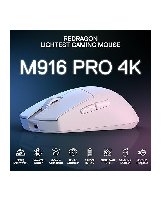 Redragon King 4K M916 PRO 3-Mode Wireless Gaming Mouse, Hype-Speed 4K Polling Rate, 49G Ultra-Light 26K DPI Gamer Mouse w/Ergonomic Natural Grip Build, Redefinable Macro Buttons, Software Supported
