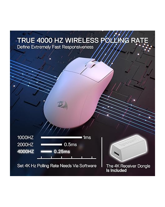 • 4000Hz Report Rate – Armed with Redragon’s first 4K transmission tech and Nordic flagship chip, unleashing the precisest tracking, the fastest moving and the lowest consumption performance, the mighty beast is on the loose.