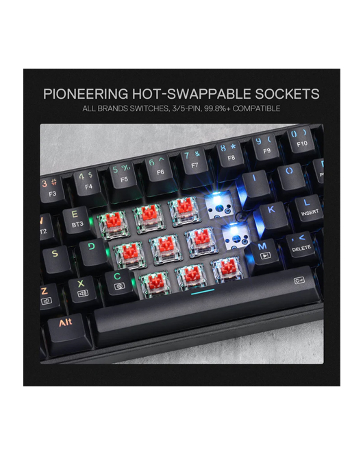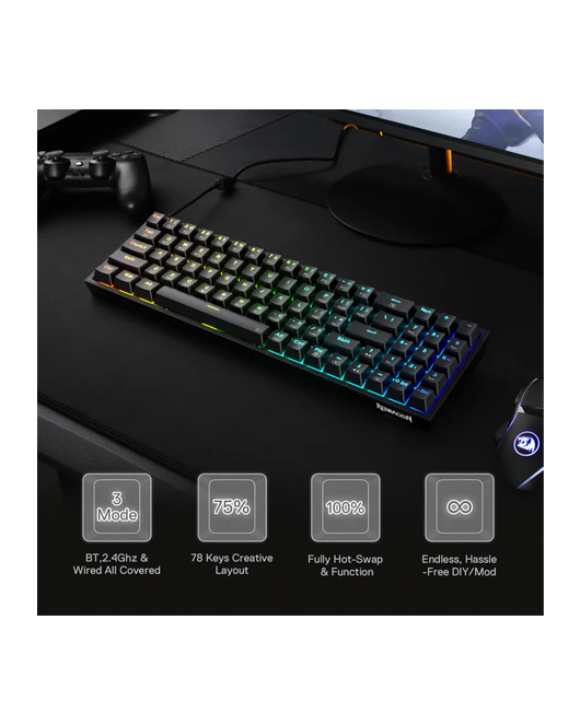 الوصف العام:توفر مجموعة Redragon S107 تجربة ألعاب متكاملة تجمع بين لوحة مفاتيح بإحساس ميكانيكي وفأرة دقيقة الأداء مزودة بـ DPI قابل للتعديل. تتميز اللوحة بإضاءة RGB متعددة الأنماط، و25 مفتاح Anti-Ghosting، و12 مفتاح وسائط لتجربة سلسة وكفاءة عالية في كل من الألعاب والعمل.المواصفات الفنية:نوع المجموعة: لوحة مفاتيح سلكية بإحساس ميكانيكي + فأرة ألعابنمط الاتصال: USB سلكي (Plug & Play)توافق الأنظمة: Windows، PC، لابتوبالإضاءة: 6 أنماط إضاءة RGB قابلة للتعديل في السرعة والسطوععدد المفاتيح: 104 مفتاح مع 12 مفتاح وسائط متعددةAnti-Ghosting: دعم 25 مفتاح لضغطات متزامنة بدون تعارضالفأرة: دقة قابلة للتعديل حتى 3200 DPI (1000 / 1600 / 2400 / 3200)الميزات الإضافية:تحكم ضوئي مخصص: تخصيص كامل لإضاءة RGB حسب رغبتك، من الثابت إلى المتغير أو بدون إضاءةراحة في الاستخدام: تصميم مريح مع مسند قابل للطي وطلاء ناعم الملمس لتجربة كتابة مريحةسهولة التوصيل: لا حاجة لتعريفات، فقط قم بالتوصيل والبدء مباشرةتحكم دقيق: زر مخصص لتغيير DPI مع مؤشر ضوئي يوضح المستوىكفاءة تشغيل: مفاتيح وسائط لتسريع التحكم بالصوت والتشغيل أثناء اللعب أو العملاعتمادية عالية: دعم فني متوفر على مدار الساعة وضمان يصل إلى 36 شهرًا