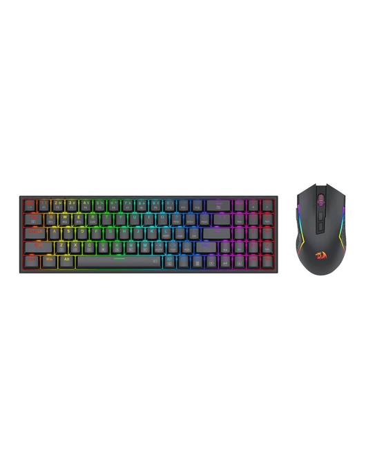 Redragon S136 | مجموعة لوحة مفاتيح وفأرة ألعاب ميكانيكية لاسلكية ثلاثية الوضع RGB – تصميم مدمج بنسبة 75% مع دونغل مشترك – أسود