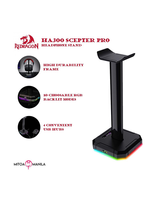 Redragon Scepter PRO HA300 with 10 RGB Lighting Modes and 4 USB Ports Tabletop Headphone Stand