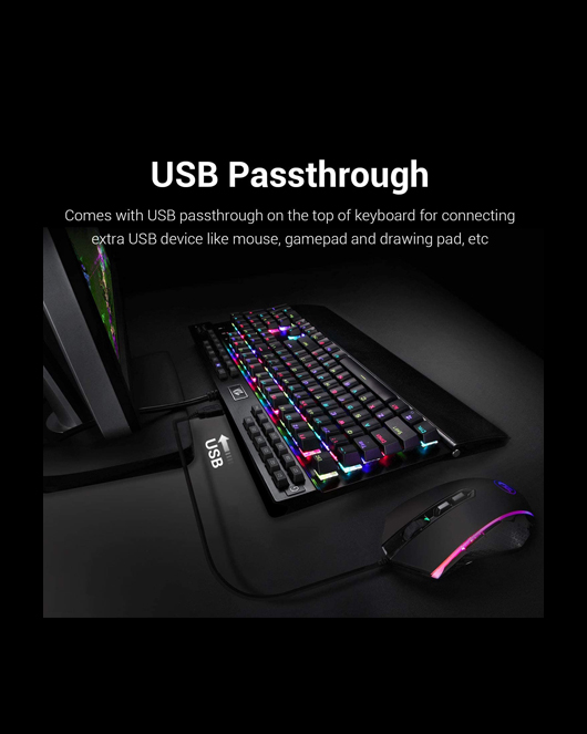 • ALL 131 mechanical gaming keyboards keys are conflict free (n-Key Rollover) for ultimate Gaming performance. Featuring, 12 multimedia keys, 12 programmable macro keys, USB passthrough, volume control, Non-Slip Ergonomic, splash-proof Design. Comes with Full numeric keypad and a gold-plated corrosion free USB connector for a reliable connection