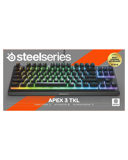 SteelSeries Apex 3 TKL RGB Gaming Keyboard – Tenkeyless Compact Form Factor – 8-Zone RGB Illumination – IP32 Water & Dust Resistant – Whisper Quiet Gaming Switch – Gaming Grade Anti-Ghosting