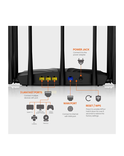 • 4×4 MU-MIMO for 5GHz BAND :Powered by 4X4 MU-MIMO technology of the 5 GHz band, it provides wider WiFi coverage and faster WiFi speeds than regular routers