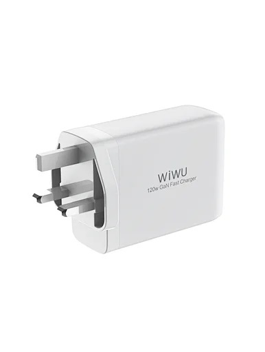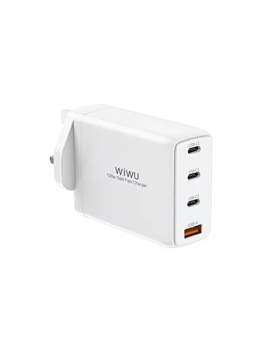 WiWU شاحن جداري سريع 4 في 1 Mini GaN بقوة 120 واط – أبيض