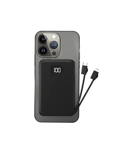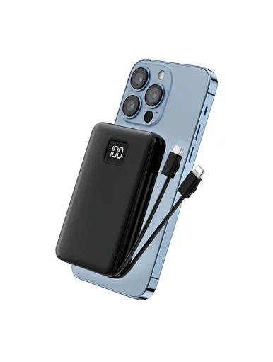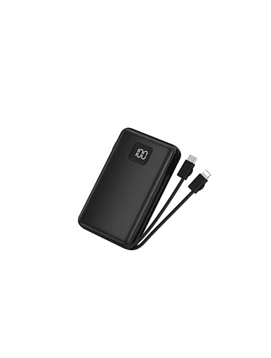 باور بانك عملي وخفيف الوزن مزود بكابلات USB وLightning مدمجة، مثالي للاستخدام اليومي، السفر، والأنشطة الخارجية. تصميمه المدمج يسهل حمله في الحقيبة أو الجيب، ويوفر شحنًا سريعًا وفعالًا للأجهزة المختلفة دون الحاجة لحمل كابلات إضافية، مما يزيد من الراحة والمرونة في الاستخدام.